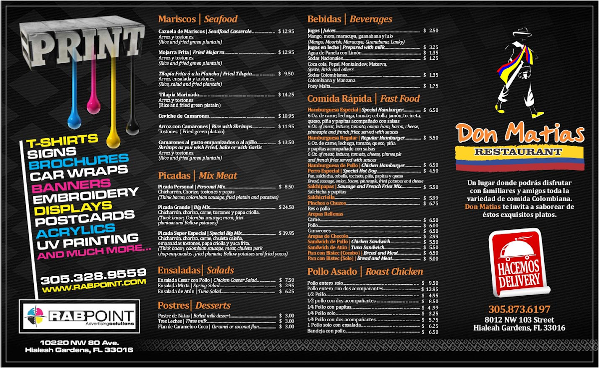 Don Matias Restaurant, nestled in the heart of Hialeah, Florida, stands out as a vibrant beacon of authentic Colombian cuisine. From the moment you walk in, the friendly staff welcomes you with warmth, reflecting a true passion for hospitality. Their extensive menu features traditional Colombian dishes that evoke comfort and rich cultural heritage, bringing an unforgettable taste of Colombia to every plate.